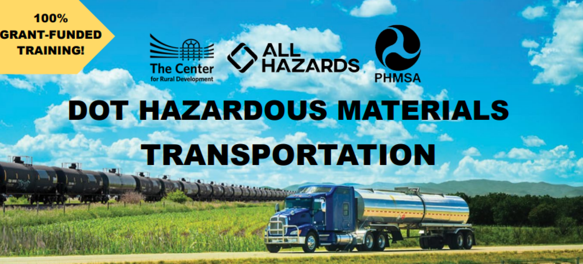 This DOT HazMat Transportation free training course is offered by the All Hazards Training Center (AHTC), in partnership with the Center for Rural Development (CRD), through U.S. Department of Transportation (DOT), Pipeline Hazardous Materials Safety Administration (PHMSA), Hazardous Materials Instructor Training (HMIT) grant support.